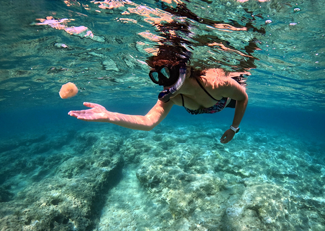 Snorkelling at Hikkaduwa, Pigeon Island and Unawatuna offers some of the most delightful views of gorgeous coral reefs where tiny colourful schools of fish can be seen hiding. From November to April on the Southwest Coast and May to September on the East Coast, you can explore these underwater illusions.